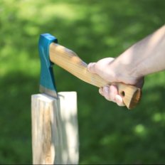 Hache en acier forgé et trempé, dotée d’un taillant prêt à l’emploi offrant une coupe nette et durable. Son manche galbé ergonomique assure confort et sécurité, et l’emmanchement douille rase par coin garantit une tenue solide lors de vos travaux.