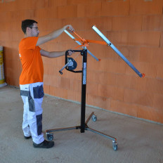 - Pose des plaques de plâtre de toutes largeurs : 0,60 m, 0,90 m et 1,20 m grâce aux sabots escamotables et réglables sur le bras du Levpano® (breveté) et grâce aux bras réglables opposés aux sabots